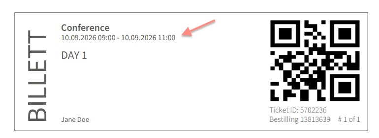 Below you can see which time slot will be displayed on the ticket. If you don’t select a custom time slot, the event’s main time will be shown on the ticket by default.